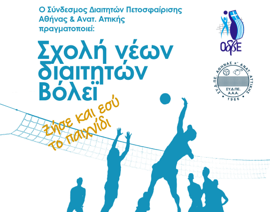 Ο Σύνδεσμος Διαιτητών Πετοσφαίρισης Αθήνας & Ανατ. Αττικής πραγματοποιεί σχολή νέων διαιτητών τις ακόλουθες ημέρες και ώρες:
